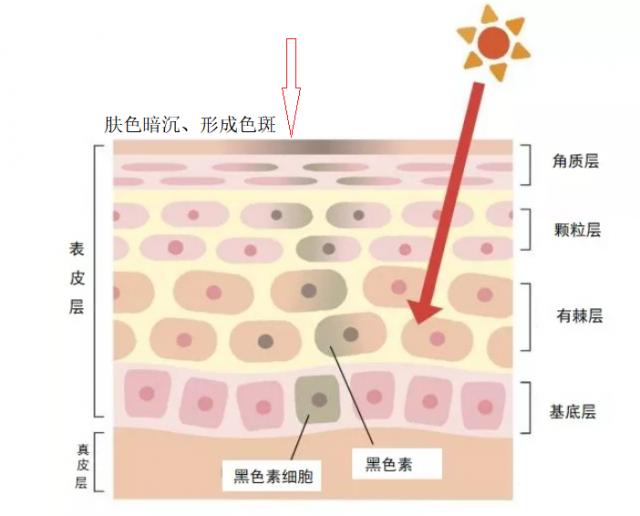 然而在日常中,我們不可避免會受到紫外線的照射,從而持續刺激基底層的黑色素大量分裂,黑色素不斷向上推進堆積在角質層。正常情況下這些黑色素會隨著皮膚新陳代謝慢慢排出體外,但是由于每個人的生活習慣不同,再加上皮膚會自然衰老,這些沉積黑色素無法被及時排出,慢慢在皮膚表層形成色斑。