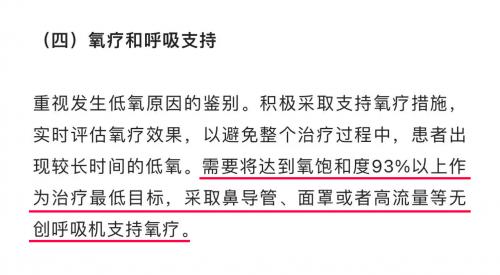 《上海市新型冠狀病毒感染診治規范與分級診療流程》中明確提及:“需要將達到氧飽和度93%以上作為治療最低目標,采取無創呼吸機支持氧療。”