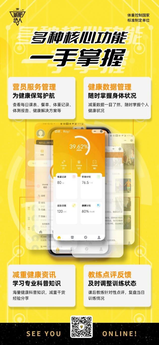 多年來,陽光興亞始終堅持“體育+科技+大健康”路線,躬身科技健康研究,獨立開發(fā)營員服務小程序。小程序涵蓋服務管理、健康數據、減重資訊、教練反饋四大內容,為營員提供入營體質檢測、代謝情況監(jiān)控、飲食控制等全方面掌上運動減肥服務,有效降低肥胖群體心血管代謝風險,改善其糖脂代謝水平等,從而安全提高肥胖群體的體質健康水平。