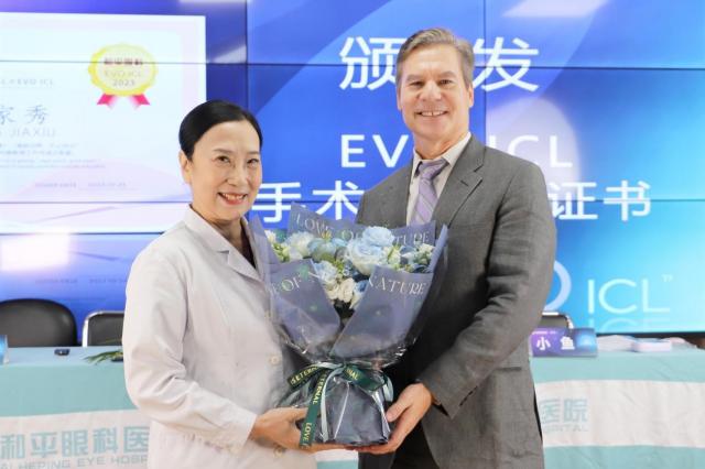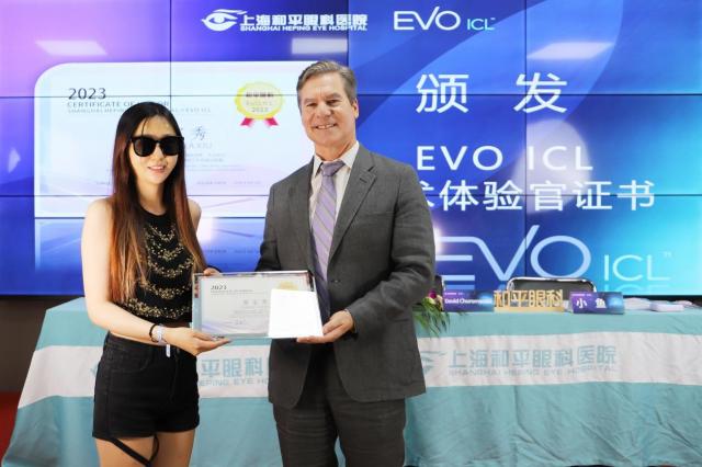 David Choromanski先生為體驗官秀秀頒發EVO ICL手術體驗官證書