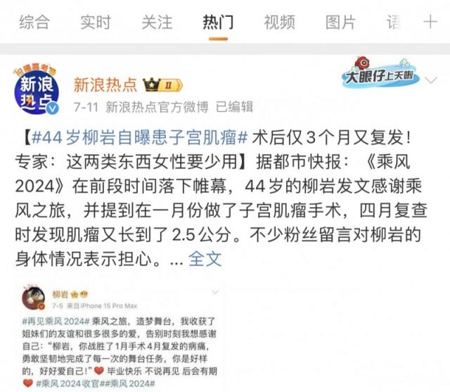 近期,“某女星在節目中自曝患子宮肌瘤”的新聞登上了熱搜,并提到在一月份做了子宮肌瘤手術,四月復查時發現肌瘤又長到了2.5公分。