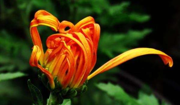 12、秋天到了,菊花金黃色的花瓣慢慢綻放。