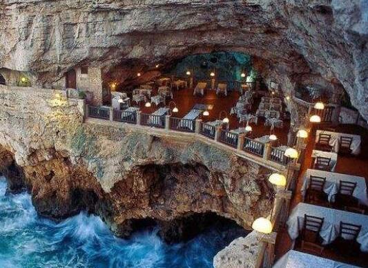 意大利的這家洞穴餐廳位于意大利南部的濱海小鎮(zhèn)波利尼亞諾,餐廳建在奇妙而幽深的巖洞中,在這里就餐能夠欣賞到美麗的海景,還能聽(tīng)到海浪拍打海岸的聲音。