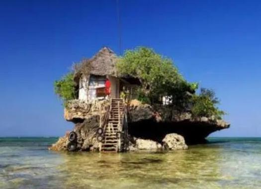 這家?guī)r石餐廳坐落在東非桑給巴爾島海灘上,餐廳在2012年開(kāi)始營(yíng)業(yè),只提供午餐和晚餐,最多只能容納45人同時(shí)用餐,顧客可以沿著海岸線步行到達(dá)餐廳中,但漲潮后需要坐船返回。