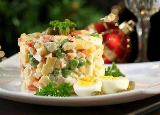 俄式奧利維爾色拉是俄羅斯有名的涼拌菜,是以土豆、酸黃瓜、紅蘿卜、煮雞蛋等食材為原料使用蛋黃醬拌制而成的,是俄羅斯很多餐廳的招牌菜。