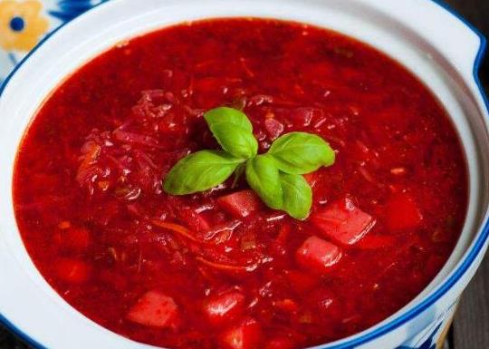 紅菜湯是俄羅斯很多地區都非常流行的菜式,而最有名的就是莫斯科紅菜湯,紅菜湯是以紅菜、牛肉、番茄、洋蔥和土豆等主要食材制作的,湯色也是紅色的,俄羅斯人在喝紅菜湯的時候還會加入一勺酸奶調味。