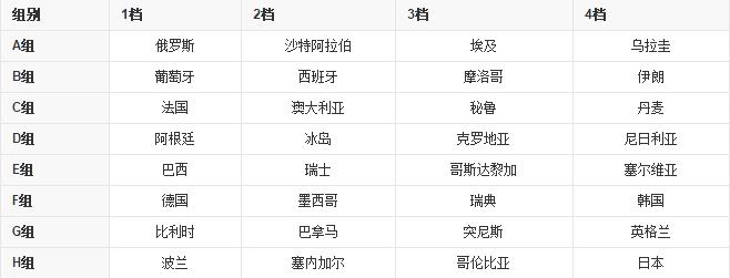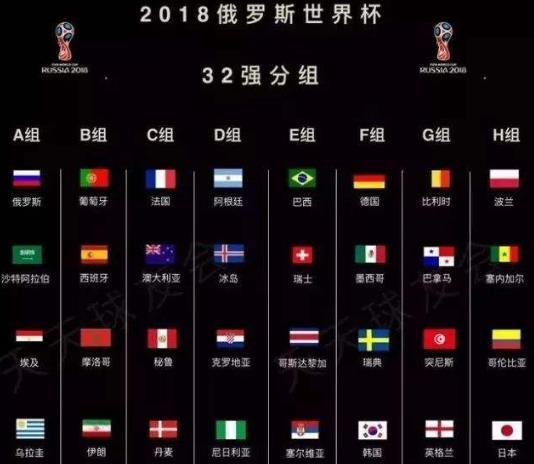 ▼世界杯32強分組一覽: