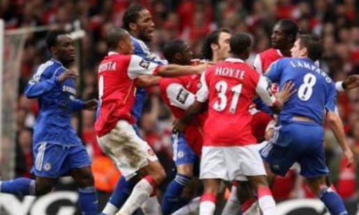 2007年英格蘭聯賽杯決賽在切爾西和阿森納之間展開,比賽開場僅僅8分鐘,切爾西隊長特里在第57分鐘被阿森納中場一腳踢中頭部昏迷不醒,這次粗野的犯規也為賽后的大戰埋下了伏筆。德羅巴的兩個進球幫助切爾西反敗為勝,在比賽馬上就要結束的時候,圖雷和米克爾發生了爭執,想上來勸架的蘭帕德也被偷襲,于是雙方球員混戰在了一起,一共十八名球員卷入了這場斗毆,米克爾、圖雷和阿德巴約都被紅牌發出場外。雖然藍軍如愿捧起了獎杯,但是在沖突中表現神勇的米克爾卻遭到四場停賽,阿森納球員圖雷和阿德巴約也遭到了停賽的處罰。