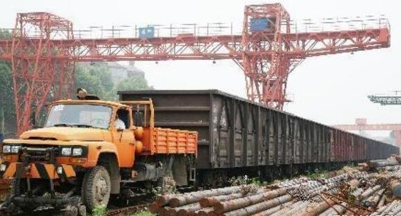 在武漢某大型鋼材倉庫里,經(jīng)過改裝的汽車拖著運(yùn)鋼材的火車車皮行駛在鐵路上。據(jù)悉,這輛經(jīng)過改裝的普通汽車,車身上安裝了8個(gè)鐵輪子,當(dāng)車子開上鐵路后,通過液壓裝置將鐵輪子放下,就可以充當(dāng)“火車頭”的角色拖動(dòng)火車車皮了。