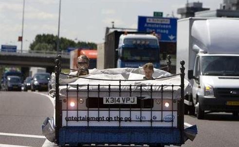 在荷蘭阿姆斯特丹街頭出現(xiàn)一輛神奇的移動(dòng)床,這種汽車床可以像汽車一樣開動(dòng),并且光明正大的“行走”在荷蘭阿姆斯特丹街頭,這張床歸一家英語電視臺主持人EddChina所有,并且獲得了在路上自由行駛的許可。唯一不一樣的就是這個(gè)汽車設(shè)計(jì)成雙控制系統(tǒng),床上的兩個(gè)床位都能自如地控制車輛的行駛,這樣一來,該睡覺的睡覺,該駕駛的駕駛,既能保證睡眠質(zhì)量,又不耽誤駕駛行程,一舉兩得,就是要是尿床了不知道是不是有點(diǎn)難搞。
