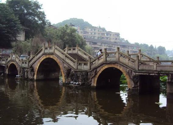 四川省省級自然風景保護區——尖山風景區,位于自貢榮邊鎮境內,海拔497.7米,方圓287公頃。尖山風景區在1955年建成尖山湖后形成雛形,于1986年命名。尖山湖水域38公頃,水深18米,湖水四季豐盈,秀麗多姿。放舟湖中,碧波蕩漾。尋幽水巷,笑語拂衣。自有“舟篷絕壁旋無路,水繞余峰見綠波”之感;駕艇飛馳,破浪乘風,更生萬丈豪情。新建有寬2.5米、長68米、高于水面8米的湖面索橋,凌空飛渡,如虹出水。