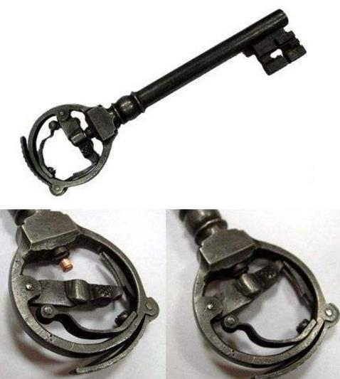 依照鑰匙的外形而制造的暗殺間諜槍,其外表看上去完全是一把粗大的大門鑰匙,但實(shí)際上。卻是一支可以發(fā)射6.35毫米子彈的手槍。鑰匙柄打開后,是裝填子彈的彈倉,柄上有指扣觸發(fā)器,觸發(fā)后,彈頭便從鑰匙前端射出。該槍的外形多種多樣,制作精巧,隱蔽性強(qiáng),操作簡(jiǎn)便。