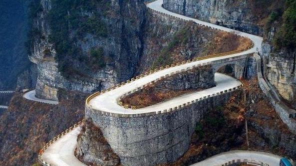 在這個被稱為“通天大道”之稱的盤山公路上駕車行走,蜿蜒的道路,似玉帶般,彎彎緊連,層層迭起。乘客們可以望著道路兩邊的絕壁千仞與幽深的空谷,車身仿佛穿梭在迷宮,讓你找不到頭緒,眼花在這“天下第一公路奇觀”中。