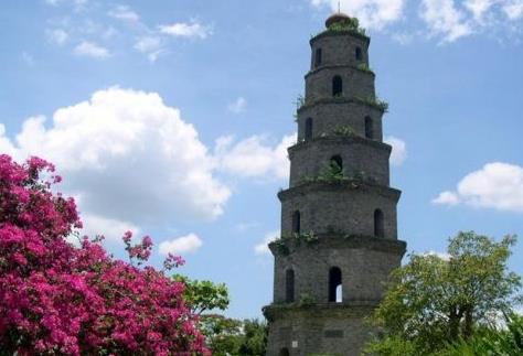 仙溝塔見龍塔又名仙溝塔,位于海南定安縣城東南約7公里的龍滾坡上。是海南省至今保存較為完整的建筑時間較早的古塔之一。塔由磚石砌成,共7層,高25米。依《易經》八卦設計為八面體,墻上分別紋印著“日、月、星、辰、天、地、玄、黃”等字,底層正門刻著“風調雨順,國泰民安”等字,今仍清晰可辨。見龍塔共設有28個實門,門的設置很科學。每層有8個實門和假門,其中第1層實開東、西、北3個門,其它5個門都為假門。第2層則與第1層剛好相對,實開5門,虛開3個假門。