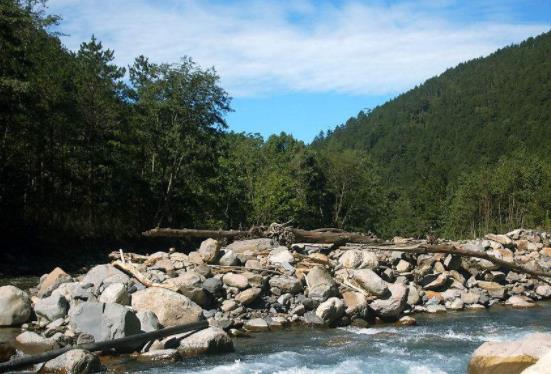 七家灣溪位于臺中市和平區(qū)武陵地區(qū),屬于雪霸國家公園管轄范圍,其水源來自武陵四秀之一的桃山。它是大甲溪上游的主要支流,全長約15.3公里,集水面積約5603公頃,水體流量受夏季豐水期降雨的影響頗大,水位因而有冬枯夏豐的變化。七家灣溪因受氣候、水文與河谷地形影響,呈現(xiàn)出淺瀨、急流、緩流、深潭、階梯型瀑布等多樣化的棲地型態(tài),不僅形成很多著名的旅游景區(qū),也為各式水生生物提供了良好的生存環(huán)境。