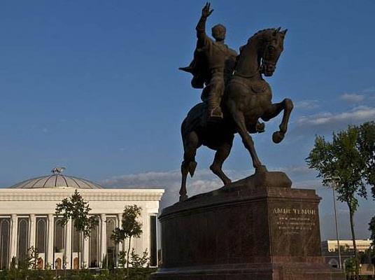 帖木兒廣場建立于19世紀(jì),為一個(gè)花園式廣場,是為了紀(jì)念烏茲別克斯坦歷史上偉大的戰(zhàn)略家、軍事家和政治家帖木兒汗而建立的。在蘇聯(lián)時(shí)代,該廣場被譽(yù)為“革命廣場”,烏茲別克斯坦是從前帖木兒帝國的所在地,這座白色的帖木兒廣場就是為了紀(jì)念這位叱咤風(fēng)云的人物。塔什干的夏天氣溫高達(dá)40℃,這里的噴泉非常清涼,孩子們經(jīng)常在噴泉下沖涼,成為了孩子們的樂園。廣場正中有帖木兒策馬橫戈的銅像,十分威武,英俊瀟灑。帖木兒廣場綠樹環(huán)抱,樹下鋪滿了小花小草,各種鳥兒在草坪上覓食,鳥鳴之聲不絕于耳。