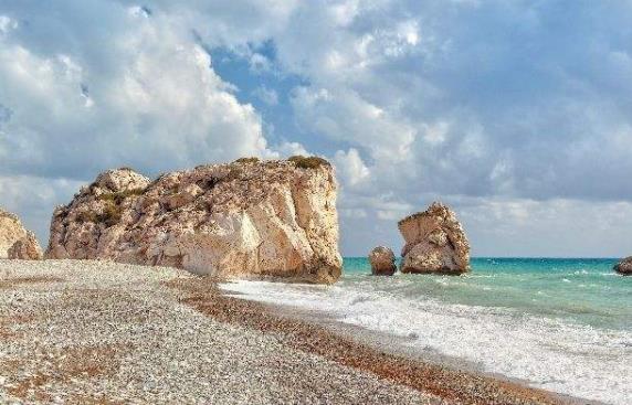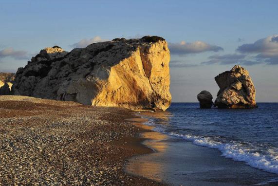 愛(ài)神巖坐落于塞浦路斯的海濱城市帕福斯,距離市中心25公里,是由于海水侵蝕而形成的海蝕柱,被認(rèn)為司愛(ài)與美之女神阿佛洛狄忒(維納斯)的誕生之地,這使其成為世界聞名的旅游勝地。帕福斯的海岸邊波濤滾滾,峭壁陡峭,一群突兀高聳的巨巖,有的像石筍沖出海面,有的像巨蘑屹立在水中,最大的一塊高約30米。這群巨巖統(tǒng)稱(chēng)“羅密歐”,“羅密歐”在希臘文中即“巖石”之意,相傳愛(ài)神阿佛洛狄忒(維納斯)就是在這附近海水的泡沫中誕生的,故稱(chēng)“愛(ài)神巖”。