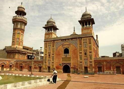 巴德夏希清真寺亦稱皇家清真寺,位于巴基斯坦旁遮普省拉合爾市內。該清真寺為莫臥兒帝國皇帝奧朗則布時期興建,1673年竣工,是巴基斯坦最重要的清真寺之一,也是著名的旅游景點。巴德夏希清真寺整體采用莫臥兒建筑風格,由拱門、廣場、禮拜殿三部分組成。其中禮拜殿為主體建筑,殿頂及兩側有三個圓頂,而且在禮拜殿的圓頂上,鐫刻著各種美麗的花紋和涂金粉的《古蘭經》文,光彩奪目;殿內大理石鋪地,凹壁由紅色磚石砌成,別具匠心,墻壁的瓷嵌飾帶,具有濃厚的波斯和莫臥兒風格。