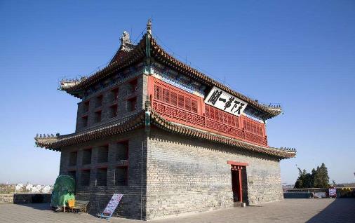 潼關(guān)位于陜西省渭南市潼關(guān)縣北,北臨黃河,南踞山腰。《水經(jīng)注》載:“河在關(guān)內(nèi)南流潼激關(guān)山,因謂之潼關(guān)。”始建于東漢建安元年(196年)。潼關(guān)是關(guān)中的東大門,歷來為兵家必爭(zhēng)之地,乾隆皇帝游歷帝國大好河山,行至于此,也不免感慨潼關(guān)之險(xiǎn)峻,并于城樓外橫額上留下“第一關(guān)”的鎏金御書。