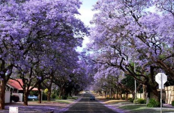 藍花楹隧道從世界上最大的人造森林約翰內斯堡一直延伸至南非花園城比勒陀利亞,是一個完全由藍花楹裝扮而成的隧道,充滿了天然之美和藍紫色之美,已經成為南非最受歡迎的旅游目的地之一。藍花楹于一百多年前被引進到南非,對于南非來說由于與眾不同的意義,每個人都喜歡藍花楹的藍色和紫色,這個神奇的藍花楹隧道更成為人們心目中最美麗的地方。藍花楹隧道擁有70000多棵藍花楹,盛開時使整個城市到處呈現出絢爛紫色和藍色。