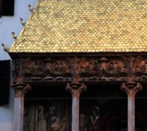 黃金屋頂(德語:Goldenes Dachl)是奧地利因斯布魯克的地標,由神圣羅馬帝國皇帝馬克西米利安一世建于1500年,裝飾著2657塊鍍金銅瓦。陽臺上的浮雕顯示了該國的盾徽、特殊符號以及他生活中的其他人物。黃金屋頂是由大公弗里德里希四世建于15世紀初,作為蒂羅爾君主的宮殿。黃金屋頂其實是舊城區心臟中心廣場的3層陽臺,由皇帝馬克西米利安一世(神圣羅馬帝國)構建,作為皇家包廂,他可以坐在陽臺,觀賞下面廣場的比賽。