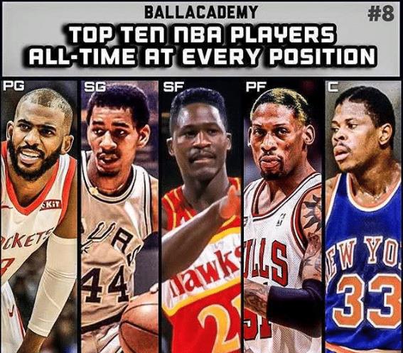 8、克里斯-保羅、喬治-格文、多米尼克-威爾金斯、丹尼斯-羅德曼、帕特里克-尤因