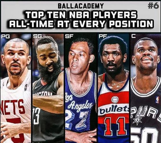 6、賈森-基德、詹姆斯-哈登、埃爾金-貝勒、埃爾文-海耶斯、大衛(wèi)-羅賓遜