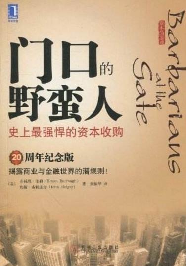 《門口的野蠻人》(Barbarians at the Gate)再現了華爾街歷史上最著名的公司爭奪戰——對美國RJR納貝斯克公司的爭奪戰。四個競標方參與了競爭,KKR公司最終以250億美元取得勝利,獲得了RJR納貝斯克公司的控制權。提供了最高水平公司金融操作的具體細節,全面展示了企業的管理者如何取得和掌握公司的控制權,是一部精彩的華爾街商戰紀實巨著,是每一個公司管理者和對華爾街金融感興趣的專業人士的必讀之書。