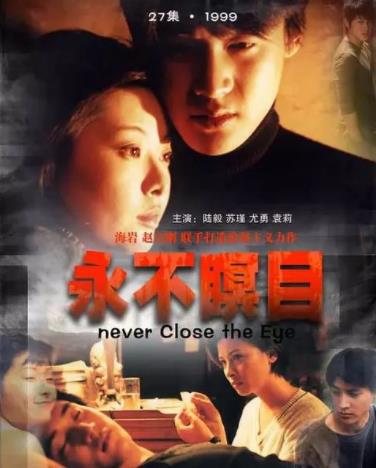 電視劇《永不瞑目》改編自海巖創作的同名小說,于1998年拍攝,由趙寶剛執導,陸毅等主演。女刑警歐慶春已犧牲的未婚夫的眼角膜被捐給了陽光帥氣的小伙子肖童。肖童與歐慶春結識后愛上了歐慶春。富家女歐陽蘭蘭在被肖童救了一命后瘋狂地愛上了肖童,但被肖童拒絕。肖童為了歐慶春,主動要求充當警方內線,打入販毒集團。歷經曲折和磨難,最終配合警方將歐陽天販毒團伙一網打盡。