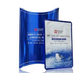 SNP是韓國藥妝,專門針對問題肌膚及敏感肌膚,面膜偏薄,里面精華含有燕窩成分,保濕效果不錯,用完有股淡淡的香味,而且用完能看出毛孔變細變小,而且價格也不貴~適合日常補水
