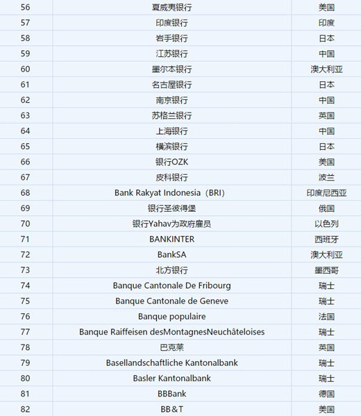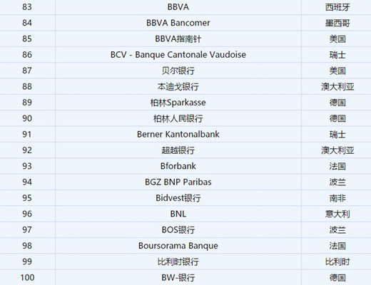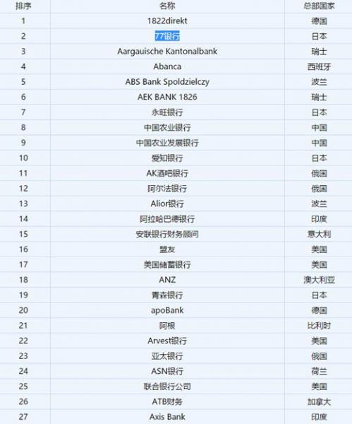 2019年福布斯世界最佳銀行排名,德國1822direkt服務(wù)最好