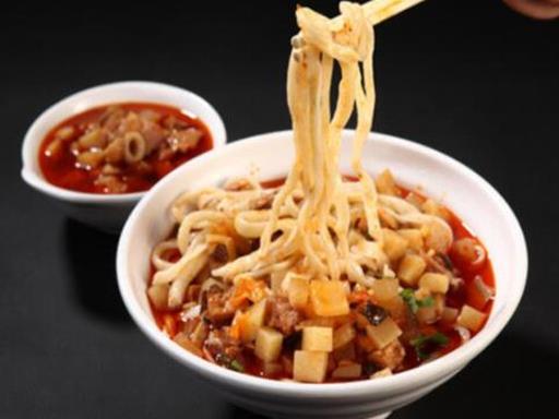 在銀川十大小吃中羊肉臊子面是到當地必嘗的,它的做法非常考究,先是用羊肉、紅辣椒、青蘿卜等配料做成臊子,然后手工或是用機器壓面,非常的筋韌爽口,恨不得連湯都能喝上幾口。