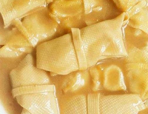 這個小吃的做法相對來說比較復雜,它的成品外形看上去像是一個睡枕,在制作完成之后就放入平底鍋中,用油煎到兩面都是金黃色,這樣子做出來的豆腐卷外皮十分香脆,餡料也是很鮮美。