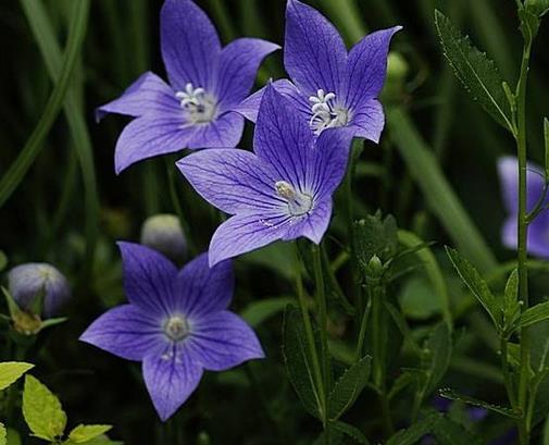 桔;ǎ瑢僦参锝酃5拈_(kāi)花,桔梗,別名為鈴鐺花、僧冠帽、苦根菜、梗草、包袱花、六角荷、白藥,拉丁文名為Platycodon gradiflorus。屬桔梗科、桔梗屬多年生草本植物。莖高20-120厘米,通常無(wú)毛,偶密被短毛,不分枝,極少上部分枝。李時(shí)珍在《本草綱目》中釋其名曰:“此草之根結(jié)實(shí)而梗直,故名桔梗”。桔梗根藥用,含桔梗皂甙,有止咳、祛痰、消炎(治肋膜炎)等效。