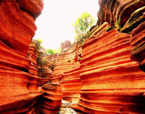 紅石林正好處在張家界至湘西這條旅游黃金走廊的中間位置,該景區有蜀犬吠日、乳燕待哺、蝸牛搬家、樓蘭古城、七彩迷宮等,另外還有地下溶洞,絕壁天坑,千年古木等等,整個景區融紅、秀、峻、奇、絕、古于一身,堪稱“武陵第一奇觀”。