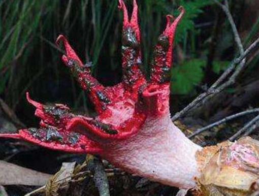 阿切氏籠頭菌主要分布在澳大利亞,新西蘭,歐洲,亞洲和北美等地區。它是從一個菌骨朵發展而來的,然后長出四到七個粉紅色的長臂,散發著腐肉一般的味道,于是就有了惡魔的手指這個名稱。