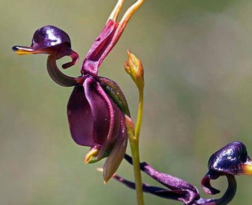 飛鴨蘭主要生長在澳大利亞等地,這種植物的花朵很寬,呈棕紅色,上面有斑點,從側面上看它就像是一只長著嘴的飛鴨,十分的有趣。