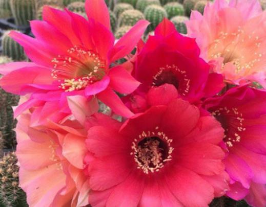 緋花玉是非常大眾的仙人球品種,在很多花鳥市場上都能買得到。它開出的花朵特別的嬌艷,紅彤彤的一片,具有極強的觀賞價值。