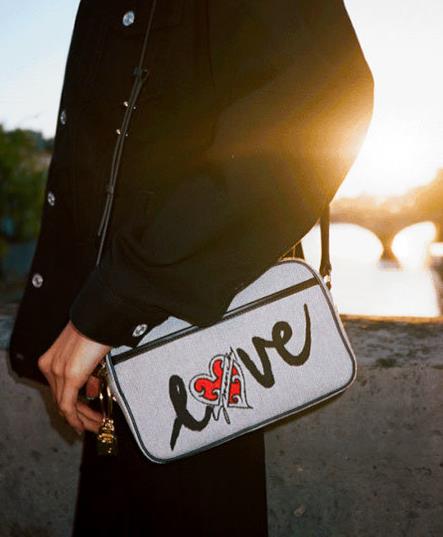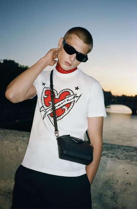 塞納河畔的熱戀男女,緊緊相依,紅白配色愛心印花,宣告無言默契,手寫體“Givenchy”標識,如丘比特之箭直擊內心,傾訴戀人深藏情意。