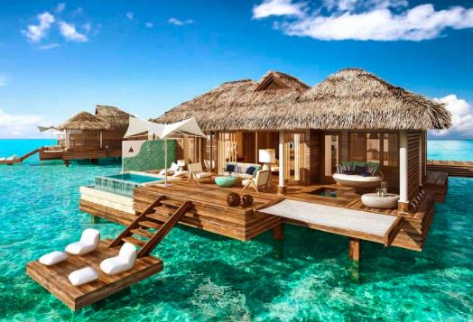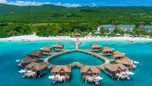 牙買加涼鞋皇家加勒比海度假酒店的服務以及環境獨特而令人深刻,該度假村提供了五個帶有浮動甲板和吊床的新型水上平房,可以輕松取代您的普通客廳,為兩個人浸泡浴缸,無邊泳池以及從套房到套房的私人水上出租車。