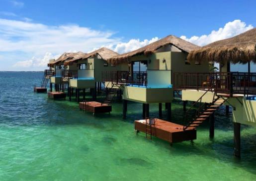 墨西哥埃稱多拉多馬洛瑪度假村是墨西哥第一個水上度假勝地,這是一個全包成人度假村,提供24小時管家,私人無邊泳池和室外淋浴,甚至還有玻璃地板,您可以在下面觀看魚兒的漩渦。他們的洋房從阿茲臺克人的起源中汲取靈感,使用當地的Zapote木制家具,白色花崗巖以及地道的圖案和織物。