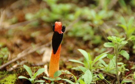 聽這個名字,可能大家首先想到的是一種有奇異功能的“筆”,其實不然,這是一種長相奇特的菌類,就像是一支紅色的筆,所以因此得名“紅鬼筆”,有時候也叫深紅鬼筆。在深山中如果碰到這種菌,可能會繞開走,反正沒人愿意碰它,為什么?因為這種菌類有一股強烈的雞屎的惡臭味!所以也被人們叫做“雞屎菌”。