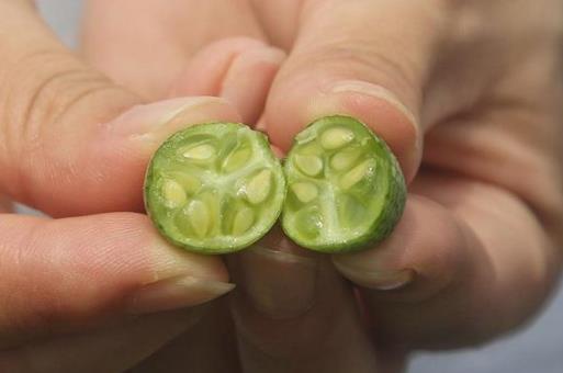 “拇指西瓜”最大的特點是維生素C含量極高,富含鉀和鎂,等完全成熟后會酸中帶甜。這種小西瓜果實味道鮮美,有一種類似香蕉、酸橙的香味。含12.6%的蛋白質,16.30%纖維和56.8%的碳水化合物。