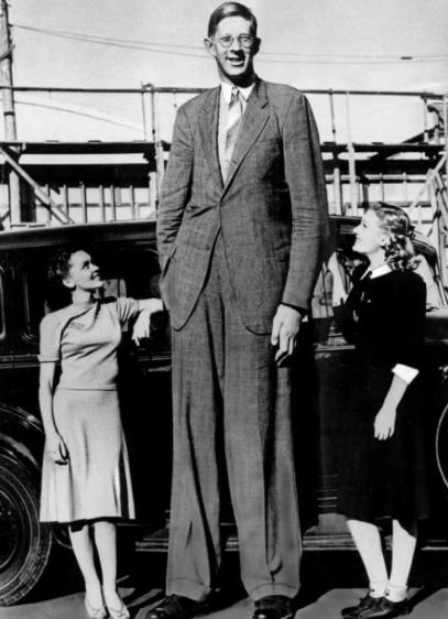 羅伯特·潘興·瓦德羅是出生于1918年的美國(guó)伊利諾斯州,剛出生的他和常人并沒(méi)有什么差別,但是直到他2歲的時(shí)候,因?yàn)榛忌狭恕澳X疝”,所以進(jìn)行的手術(shù),卻沒(méi)想到的是卻又患上了“巨人癥”,他的身高從這個(gè)時(shí)候開始的迅速的增長(zhǎng),直到長(zhǎng)到2.72米(1940年去世時(shí)的身高),是無(wú)可爭(zhēng)議的世界第一巨人。