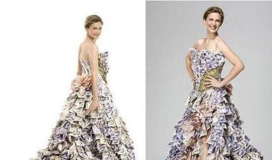 這款“鈔票婚紗”是由英國設計師所設計的,婚紗的“面料”全部是用真鈔票所制作的,僅僅其“面料”的價值就高達數百萬美元,整件婚紗的價格估計是在1000萬美元左右,折合人民幣的話在6000萬左右。
