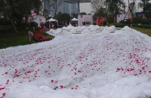 一男子用長2162米世界最長婚紗迎娶嬌妻世界上最長的婚紗歷經兩個多月的婚紗制作完成,經實際測量,婚紗寬1.5米,全長2162米,超過了世界上已有的最長婚紗1579米的紀錄。婚紗制作材料:主體部份選用時下流行的香檳白色底襯,以及優質的紗網以及水晶紗等制作,用花邊、亮片以及粉末修飾。婚紗前端用608顆洛士奇水晶裝點,代表他們認識608天,還在1984.1022米剪下,代表新娘的生日。婚紗上面有9999朵紅色手工絹花玫瑰,代表地久天長。2014年9月24日,四川省成都市,一名模特站在鮮花與婚紗的海洋中。當日,為了迎接國慶大假,工作人員擺放出一款4100米長的婚紗,該婚紗的拖尾用單層網紗制作而成,寬度1.5米,耗時一個月,大約花費4萬元。目前世界上最長婚紗的吉尼斯紀錄為2012年由羅馬尼亞人創造的2977米。主辦方現正積極申請吉尼斯世界紀錄