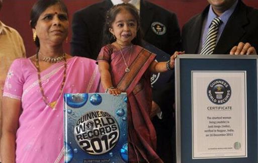 喬蒂·阿姆奇是一位來自印度的女性,1994年出生,現在也已經是24歲了,她在2013年的時候通過吉尼斯世界紀錄的官方認證,以62.8cm的身高獲得世界上最矮女性的稱號,也是目前的最矮女性的世界紀錄保持者,比起史上最矮女性保利娜·馬斯特斯只要高1.8cm,非常的袖珍。