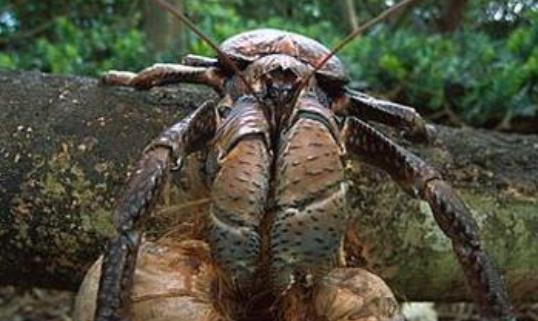 椰子蟹廣泛分布于熱帶太平洋和印度洋許多珊瑚島上,生活在海邊附近的熱帶樹林中。它們怕強光,所以白天都待在洞穴里休息,夜間才外出覓食。它們是一種雜食性動物,不僅吃植物的果實和葉子,也吃腐壞的動物尸體,甚至連比自己小的同類也在它們的食譜上。椰子蟹非常善于爬樹,可以爬到距離地面十幾米的椰子樹樹頂。憑借著一雙有力的螯足,它們可以輕易剪下椰子,鑿開椰殼享受果肉。