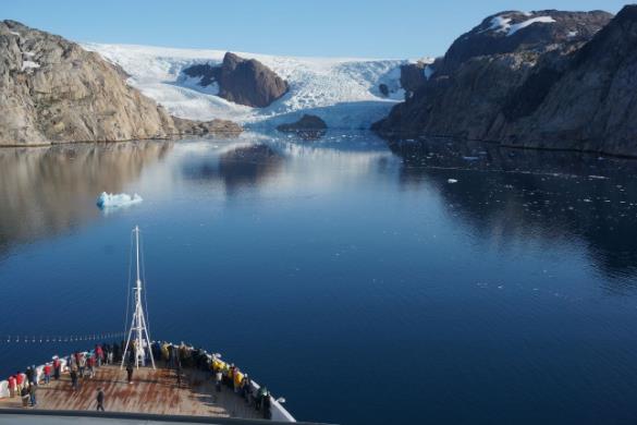 長而深的峽灣伸入格陵蘭東西兩岸腹地,形成復雜的海灣系統;人煙雖然稀少,景色卻極為壯觀。在沿海岸的許多地方,冰體逕直向海面移動;冰川斷裂,滑入水中形成大塊冰山。